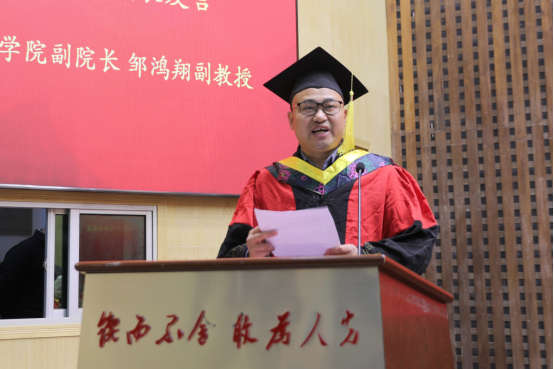Zou Hongxiang, representatives of postgraduate tutors, delivered a speech
