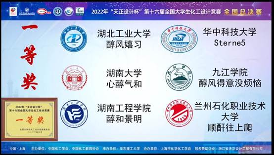 The 16th National College Students Chemical Design Competition of Tianzheng Design Cup was co-sponsored by CIESC Professional Committees, Ministry of Education and China Education Association of Chemical Industry, and hosted by East China University of Science and Technology. Due to the requirements of epidemic prevention and control, the competition was held online. At the final scene, our school competed with 60 teams from Zhejiang University, Central South University, Xiamen University and Hunan University. After fierce competition, the Chun He Jing Ming team of our school won the first prize in the national finals.