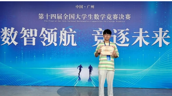 On May 27th, the final of the 14th National Mathematics Competition for College Students was held in Guangdong. Tian Zhichao, a student majoring in information and computing science from the School of Computational Science and Electronics of HIE, won the national third prize (with Tian Zhikun as his instructor), which is the a breakthrough of our school in this competition.
