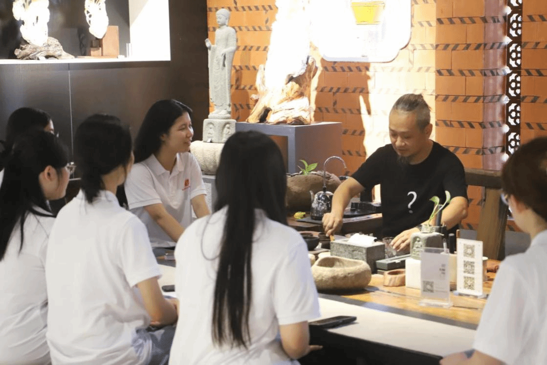 在鼎立艺术馆,展示着丰富的石雕作品,并设有先进的设计工作室和创作空间。馆内精美的石雕作品让队员们叹为观止,特别是一尊名为“希望之石”的草模雕像,展示了石雕艺术的创新与传承,刷新了大家对传统石雕艺术的认知。