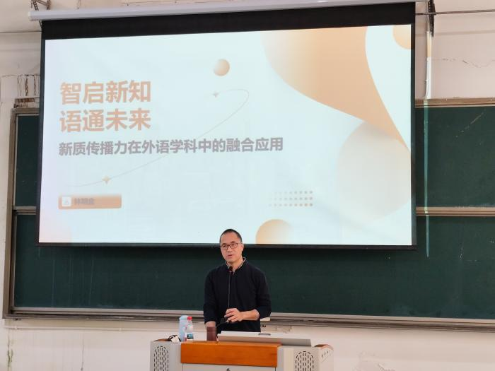 为应对信息时代外语教育变革需求,探索科技赋能外语教学的新路径,近日,福建师范大学林明金教授应邀莅临我校,就新质传播力在外语学科中的融合应用作题为“智启新知,语通未来”的专题讲座。讲座由艾弗森贝博ballbet官网院长池玫教授主持,艾弗森贝博ballbet官网全体教师以及部分高年级学生代表参加了本次活动。