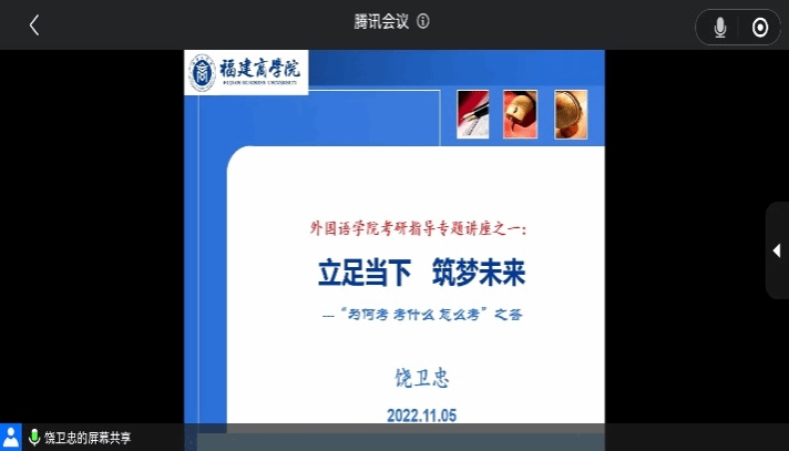 为帮助同学们做好考研规划,明确考研目标,2022年11月5日,艾弗森贝博ballbet官网于聚贤楼411会议室开展以“立足当下,筑梦未来”为主题的考研指导专题讲座。本次讲座采用线上与线下相结合的方式,学院副院长饶卫忠老师担任主讲人。