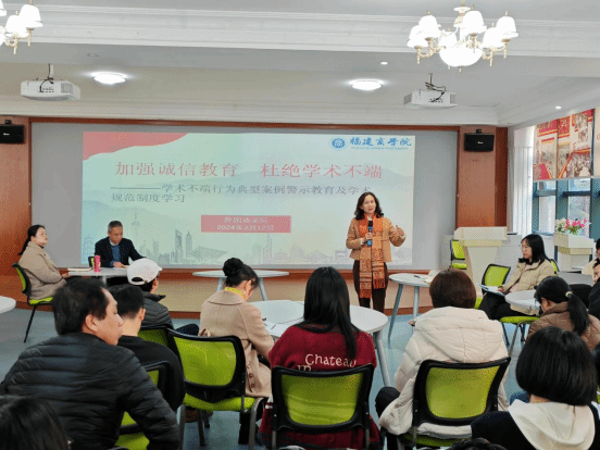 3月1日,学院各系部以线上或线下的方式组织老师们学习《学术不端行为典型案例及相关制度学习汇编(一)》等文件,开展交流讨论。3月12日,贝博官网以“加强诚信教育、杜绝学术不端”为主题,组织全院老师在外语文化体验中心开展学术不端行为典型案例警示教育及学术规范制度学习。