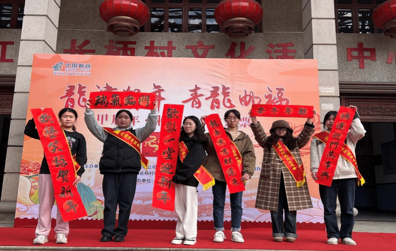 甲辰年,来龙津,赏龙票。为贯彻落实习近平总书记关于传承和弘扬中华优秀传统文化的重要论述和指示批示精神,2024年1月5日,艾弗森贝博ballbet官网学生第二党支部前往长柄村,参与由中国邮政集团有限公司福州市马尾区分公司、福建商学院、长柄村新时代文明实践站等共同协办的“龙津贺年 青龙邮福”-长柄村《甲辰年》生肖特种邮票暨《龙津贺年 青龙邮福》纪念封首发活动。