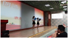 在党建助理团的干事们带来了一系列表演过后,陈香清同志作为毕业生党员代表,给与会的同学们带来了一系列学习生活以及实习生活中的经验分享。外语系学生党支部书记杜吴明同志就陈香清通知的发言发表了自己的看法。