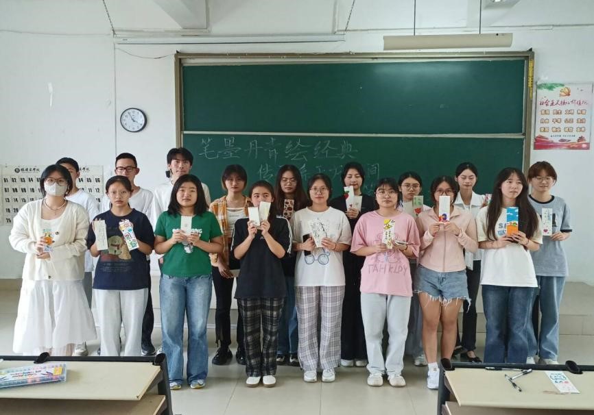 “笔墨丹青绘经典,传承系于方寸间”书签设计大赛共吸引30名选手参与,活动现场精彩纷呈。参与者们使用书法、裁剪、绘图等方法,将艺术创造力和中华文化元素融合起来,设计出一枚枚独具匠心的书签。他们用画笔描绘青春的绚烂之美,用书签的形式传承中华优秀传统文化,促进了大家对传统艺术的深入理解和思考,展现了积极向上的精神风貌。