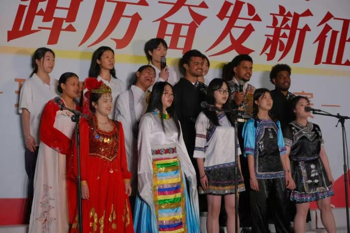 开场舞的舞者们用青春活力的舞蹈率先点燃青春主场的氛围,每一个动作都充满了力量,用舞蹈诠释着青年的朝气蓬勃。在《光荣啊,中国共青团》和各班的全场歌曲中,同学们用歌声传递着对祖国的热爱,对五四精神的传承与追求,歌声中充满了团结与奋进的力量,让人感受到了青春的美好与无限可能。来自不同国家的留学生们与学院各民族学生代表一同合唱经典曲目《茉莉花》,带来了一场别开生面的表演,那优美的旋律和谐的声线,共同唱响了人类命运共同体的美好乐章。