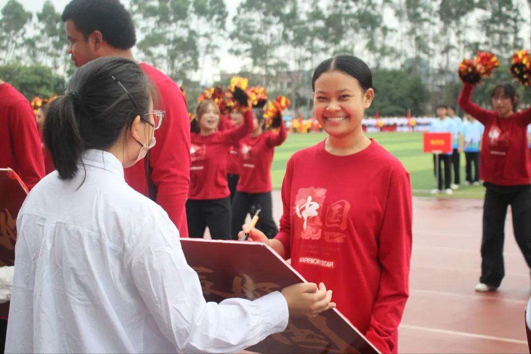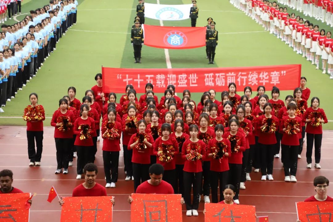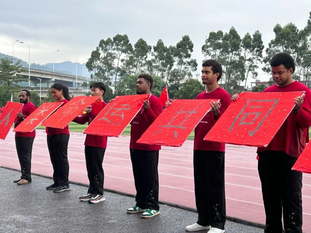 艾弗森贝博ballbet官网代表队带着蓬勃朝气与昂扬锐气,刚劲稳健地踏步入场,他们用语言架桥,以文化传情,与来自乌兹别克斯坦,老挝,新几内亚岛,萨摩亚,基里巴斯,斐济,所罗门群岛的九名留学生携手前行。他们以活力与热情诠释运动魅力,以喜悦与深情庆祝祖国生日,共同演绎歌曲《美丽中国》,用青年学子舞动青春的热情与生机为伟大祖国75周年华诞献礼。留学生们热情洋溢,手执毛笔,书写“人类命运共同体”,更彰显了中国与世界共绘一幅幅多元对话的人文交流图景的坚定承诺。