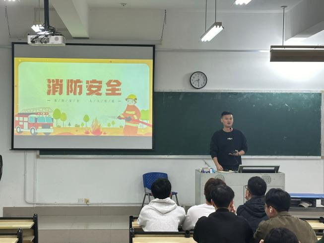 同时各班有序组织开展消防安全主题班会。会上,辅导员通过PPT展示、现场讲解、播放相关视频等形式,结合相关火灾案例,向同学们详细介绍火灾的危害性、火灾的预防与扑救方法、火场逃生自救技巧等消防安全知识,向同学们进一步普及消防安全知识,使消防安全意识入脑入心,筑起校园安全的“防火墙”。