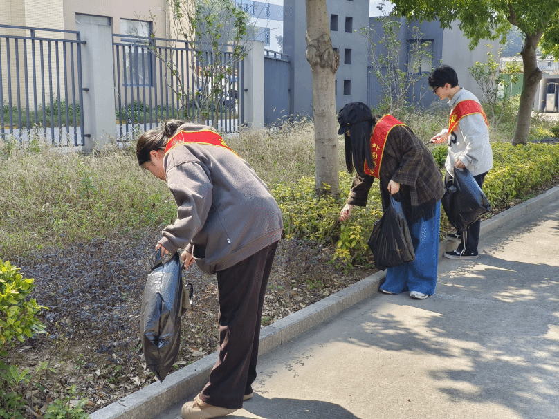 志愿者服务队身披红色绶带,手持夹钳、垃圾袋等清洁工具,深入社区背街里巷,分工明确、配合默契,对卫生死角展开了重点整治。从清理绿化带中的积存落叶到公共设施的维护,他们细致地完成各项清扫任务,以高度的热情和专注的态度,为社区营造干净整洁的生活环境贡献着自己的力量,用实际行动践行和弘扬雷锋精神。
