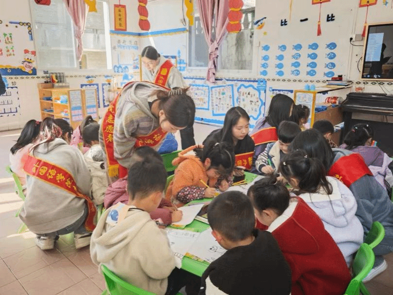 在长柄村幼儿园,志愿服务队为孩子们带来了一场别开生面的“学习雷锋”主题小课堂。通过动画视频、故事讲述、手绘创作等多种形式,志愿者与小朋友们积极互动,带领他们认识和了解雷锋的生平事迹,耐心解答他们的疑问,现场欢声笑语,气氛热烈而温馨。在“我心中的雷锋叔叔”绘画环节,小朋友们在志愿者的引导下用画笔描绘出雷锋的光辉形象,每一次落笔都饱含着他们对雷锋叔叔的敬仰,每一抹色彩都承载着他们对雷锋精神的理解,一幅幅生动的画面跃然纸上,雷锋精神也悄然扎根于孩子们的心田。