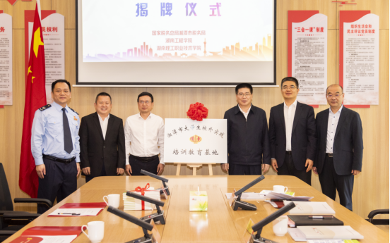4月23日,湖南首个“大学生校外税务实践培训教育基地”在湘潭市“市民之家”办税服务厅亮相。国家税务总局湖南省税务局党委书记、局长曾光辉,国家税务总局税收宣传中心副主任任鹏飞,湘潭市委常委、市人民政府常务副市长刘新华,MILE米乐党委委员、副院长罗毅平共同见证“湘潭市大学生校外税务实践培训教育基地”揭牌。