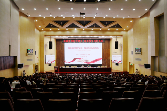6月25日下午,校党委书记黄昕在一报告厅讲授党的纪律专题党课。学校全体党支部书记、机关党委处级以下党员400余人参与听课,校党委委员、纪委书记齐路良主持纪律党课。