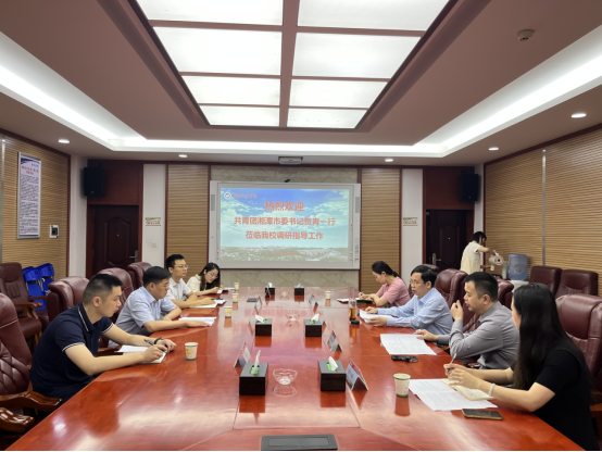 6月27日上午,共青团湘潭市委书记贺青一行来校,围绕校地融合发展、青年发展型城市建设等内容进行调研。座谈会在310会议室召开,校党委书记黄昕,党委委员、副校长张小刚,团委负责人、相关人员参加会议。