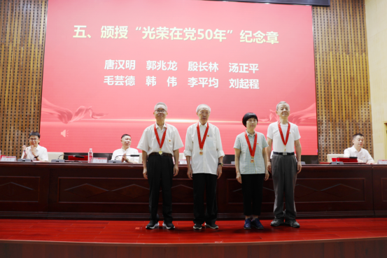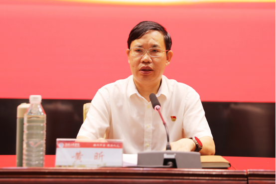 黄昕代表学校党委向全校党员致以节日的祝贺和亲切的问候,向受到表彰的先进集体和优秀个人表示热烈的祝贺,向“光荣在党50年”的老党员表示崇高敬意。他回顾了学校今年以来奋发作为的新态势以及取得的辉煌成就,强调了党建工作在推动学校高质量发展中的重要作用,以“135工程”为抓手,在人才培养、科学研究、社会服务、学科专业建设、内部治理等领域的全面发力,是每一位努力、拼搏、奋斗的湖工人向党的生日献礼的务实行动。