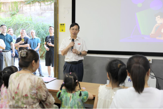 为提高全体湖工人的幸福指数,激发教职工子弟学习科学知识的兴趣、增强实践动手能力,以点带面促进全民数字素养与技能提升,7月4日,智能科学与工程学院迎来了一批教职工及他们的孩子,共同参与由湖南省全民数字素养与技能培训基地、校工会和工程训练中心科普基地联合主办的2024年湖南省全民数字素养与技能提升月活动曁MILE米乐官方网站“135工程”建设之幸福湖工“大手牵小手”亲子科普研学活动。校党委书记黄昕出席,党委副书记向前主持活动。