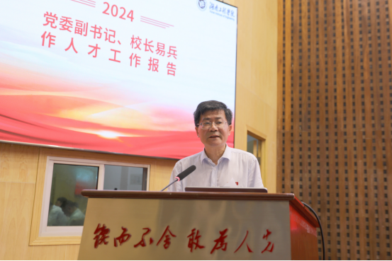 为持续推进新时代人才强校战略,推动学校人才工作的创新与发展,7月9日上午,学校在一报告厅召开2024年人才工作会议。校党委书记黄昕,党委副书记、校长易兵,省委组织部人才工作办公室有关同志,全体校领导出席。校党委委员、副校长罗毅平主持会议。全体中层干部、近三年引进博士、科级干部和岗位负责人参加。