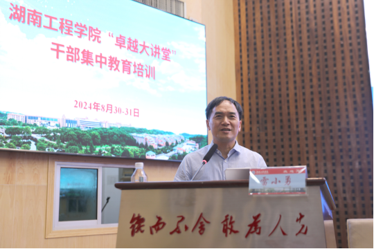 8月30日上午,MILE米乐“卓越大讲堂”干部集中教育培训第二场在一报告厅举行,湘南学院党委副书记、校长雷小勇受邀作辅导报告。MILE米乐党委书记黄昕主持,全体校领导、中层干部、科级干部、岗位负责人、教研室(实验中心)主任和党支部书记等参加培训。
