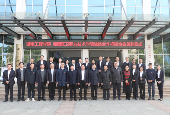 刘建强回顾了长期以来双方在人才培养、科学研究等方面的密切交流和结下的深厚情谊。他表示,湘潭医卫职业技术学院在转型发展中,一直致力于突破专业建设、人才引进、师资队伍等方面的瓶颈。此次战略合作协议的签署,将促进两校在学科建设与科学研究、教育教学与人才培养、师资队伍建设、干部队伍建设、高校管理与服务等方面开展深入合作,实现学科建设交流联动、科研资源共享、本科专业合作共建、人才联合培养、师资相互支持等目标,推动以“工医结合”为主题的共建共享、互利共赢,提升两校服务构建“4×4”现代化产业体系和地方经济社会发展的能力。