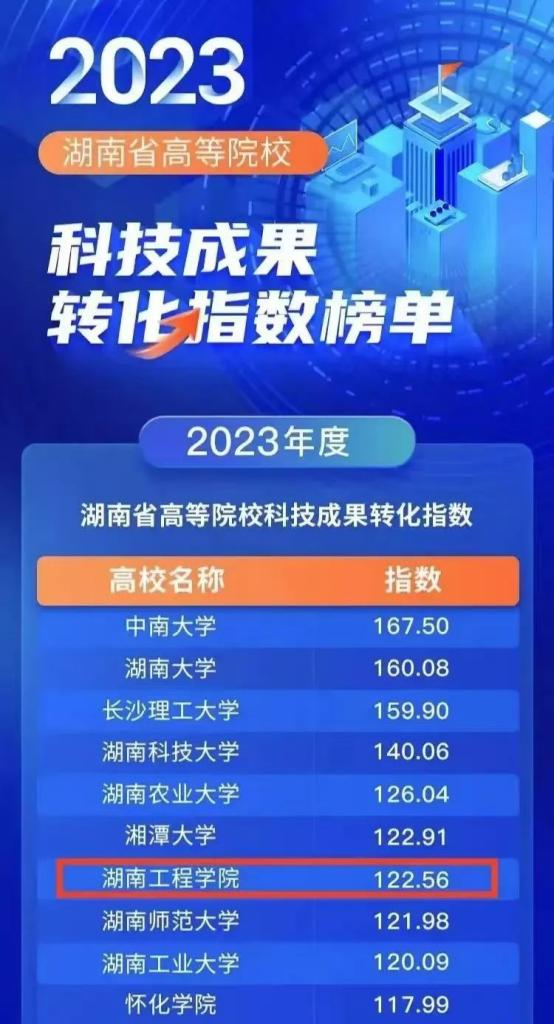 七、学校位列湖南省高等院校科技成果转化指数第7名