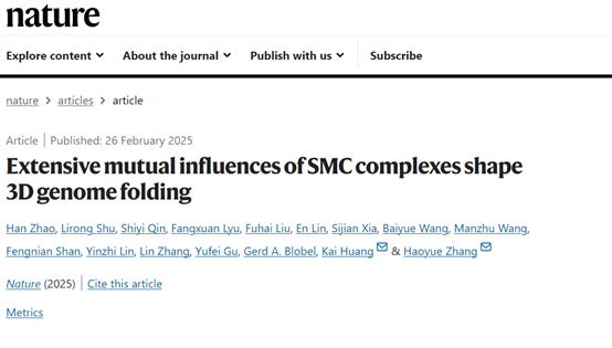 近日,MILE米乐生物工程2011级优秀校友、深圳湾实验室分子生理学研究所研究助理赵韩、SMART-西湖大学联合培养项目博士生舒立荣以及深圳湾实验室系统与物理学研究所副研究员秦诗在顶级期刊《Nature》上以共同第一作者身份发表题为“Extensive mutual influences of SMC complexes shape 3D genome folding”的研究论文。深圳湾实验室特聘研究员张浩岳、黄恺为共同通讯作者。该成果揭示了SMC复合物之间的动态相互作用以及对染色质结构的影响,为理解染色质的折叠原理提供新的思路。