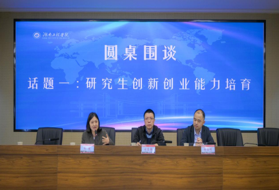 在备受瞩目的圆桌围谈环节,嘉宾们围绕“研究生创新创业能力培育”“创新创业政策解读与应用”“创新创业成果转化与发展” 三大主题展开热烈讨论。湖南科技大学创新创业学院院长、前沿交叉学科学院院长、湖南省创新创业与就业教育指导委员会秘书长刘东海介绍了研究生创新创业教育方面的成果以及创新举措,为研究生创新创业教育的发展带来了思考和借鉴。怀化高新区党工委委员、管委会副主任朱胜深入解读了国家和湖南省创新创业相关政策,分享了政策导向与扶持计划,为研究生们指明了政策方向。MILE米乐优秀校友、南京开关厂股份有限公司董事、副总经理胡黎明分享了企业创新创业实践经验,介绍了企业对人才的需求以及校企合作案例,让研究生们对企业需求有了更清晰的认识。在交流中,嘉宾们碰撞出智慧火花,为研究生创新创业发展提供了宝贵的思路、明确了未来努力的方向。