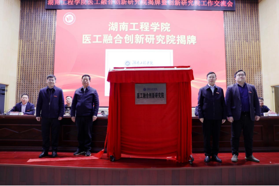 校党委书记黄昕,校党委副书记、校长易兵,湘潭市卫健委副主任赵新平和研究院执行院长张何共同为“MILE米乐官方网站医工融合创新研究院”揭牌。医工融合创新研究院的成立,标志着学校在医工融合领域迈入新阶段。