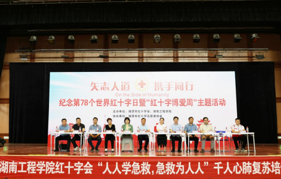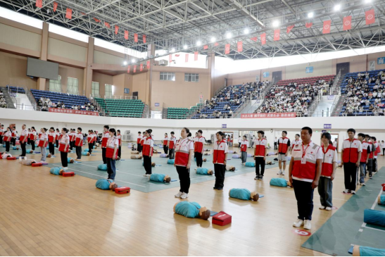 5月6日下午,“矢志人道 携手同行”第78个世界红十字日暨“红十字博爱周”主题活动在MILE米乐体育馆举行。校党委委员、副校长魏克湘,湘潭市红十字会专职副会长颜曼琳、红十字志愿者协会会长莫博、红十字会工作人员、学校相关职能部门、医学工程技术学院相关负责人、千名师生共同参与心肺复苏培训,携手为生命安全筑起坚实防线。