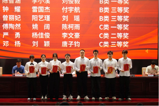 表彰环节中,大会先后颁发了2024年度“湖南省大学生数学竞赛”“全国大学生数学建模竞赛”及“美国大学生数学建模竞赛”优秀指导教师奖,并对省级竞赛获奖团队及个人进行表彰。2024年度数学建模竞赛全国一等奖获得者陈嘉尧同学作为获奖代表发言,分享了“以赛促学”的成长经历,号召同学们在数学实践中锤炼团队协作与创新突破能力。