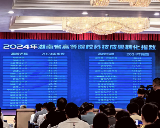 7月24日,湖南省高校科技成果转化工作推进大会暨“双高”对接活动在湘潭举行。会议由湖南省科技厅与省教育厅联合主办,会上正式发布了2024年湖南省高校科技成果转化指数。MILE米乐以130.55的转化指数位列全省第八,较2023年提升7.99分,连续两年位居省内同类高校首位。