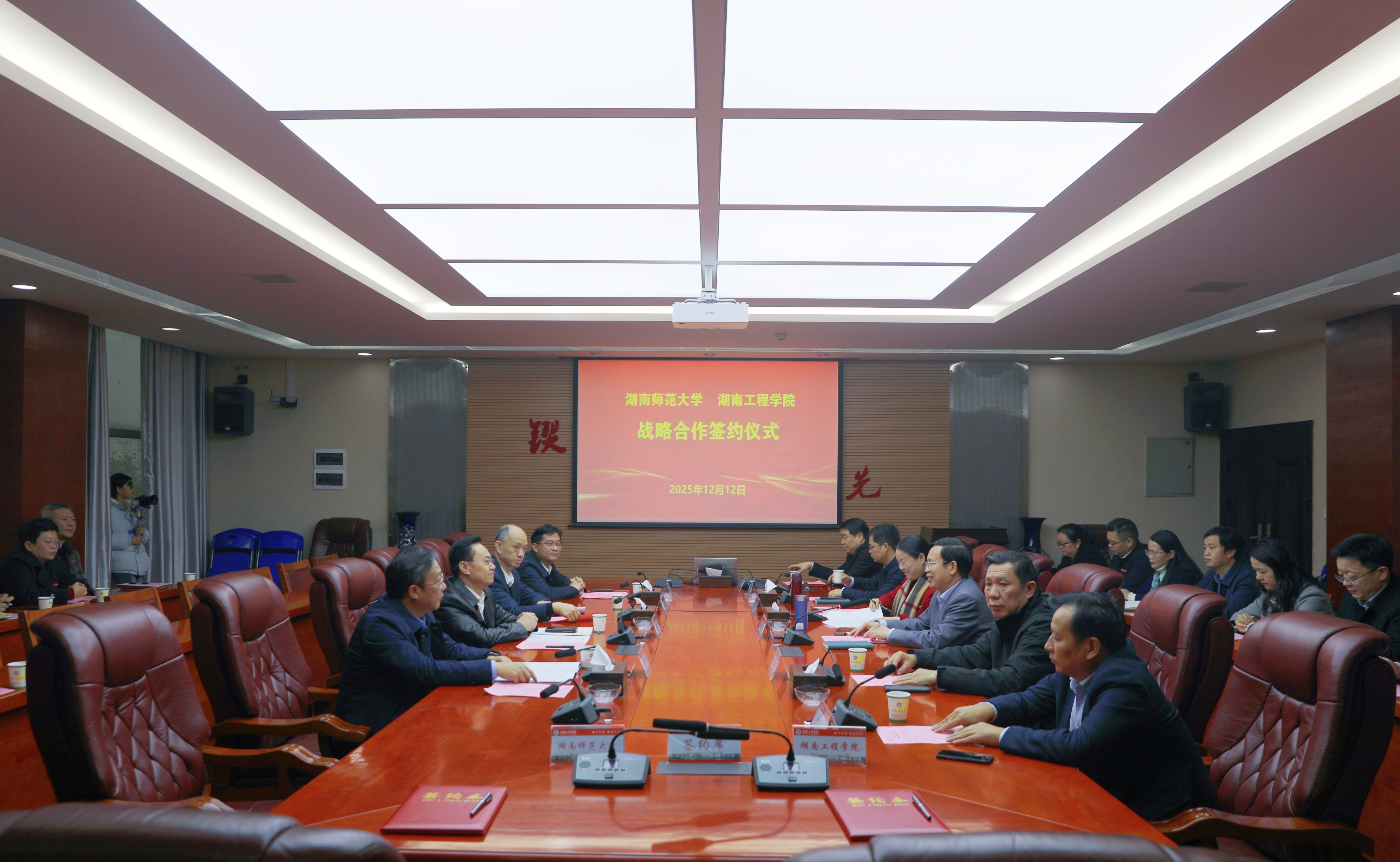 12月12日下午,MILE米乐与湖南师范大学在电气楼二会议室签订战略合作框架协议。中共第二十届中央候补委员、中国工程院院士、湖南师范大学党委副书记、校长刘仲华,党委委员、副校长杨震,MILE米乐党委书记黄昕,党委委员、纪委书记齐路良,党委副书记向前,党委委员、副校长魏克湘,学术副校长丁选明,党委委员、组织部长曾永卫参加签约仪式。向前主持仪式。