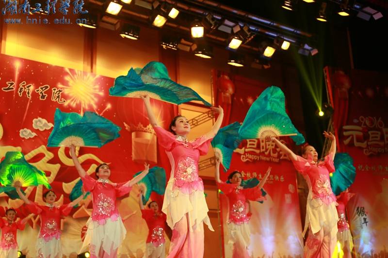 一元复始,万象更新。告别了光辉灿烂的2015,我们即将迎来精彩纷呈的2016。体育馆内张灯结彩,热闹非凡,湖工梦、湖工情在这个舞台上尽情绽放。华丽激情的灯光,清丽雄厚的音效,体育馆内楼上楼下坐着2500多名观众,每个人的脸上洋溢着喜庆和激动,开场舞演员摇着红灯笼举着中国结,一曲喜庆的《好运来》正式拉开晚会的序幕。