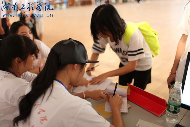 为了给新生留下更深刻的印象,各学院的宣传画报也是花样百出,内容包括热情洋溢的欢迎辞、激情澎湃的青春宣言、丰富多彩的专业介绍……理学院的“五彩贴纸板”前更是停驻了不少围观的新生和家长。理学院志愿者为每一位新生量身定做了一张手写便签纸,便签纸上写好新生姓名、专业、住宿信息以及对应负责人联系方式。“新生报到请揭走”,在新生报到高峰时段,为了提高迎新效率,新生可自主到贴纸板前揭下属于自己的那一张便签纸,根据便签纸上的提示迅速完成报到。“这样的方式好新奇,好温馨,让我对大学生活顿时充满了好奇!”一位来自湘西的女生把自己的便签纸收进行李包里,她说这是学院送给她的第一份礼物。