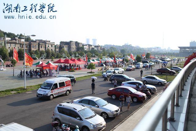 今年的迎新报到点分别设在体育馆和南校区实验楼。初秋的清晨有点微凉,迎着第一缕阳光,志愿者们早早忙碌起来,他们守候在工作站旁,随时为新生及家长提供周到细致的服务。放眼望去,报到点彩旗飘扬、人头攒动,鲜艳的迎新帐篷、热情似火的横幅,各式宣传展板、拱门汽球,把迎新报到点装扮得分外妖娆,湖工人用特有的热情喜迎五千新生。