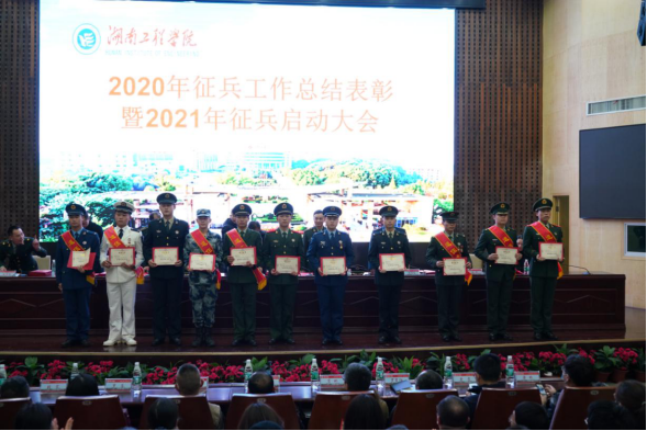 12月29日下午,MILE米乐在一报告厅举行2020年征兵工作总结表彰暨2021年征兵启动大会。湘潭军分区司令贺建大校、湘潭军分区征兵动员处处长龚政军上校和岳塘区人民武装部政委胡轶飞上校等兵役机关领导,MILE米乐副校长李军林,相关职能部门负责人、各学院党总支副书记等出席。各学院学生干部、全体退役复学老兵和八一社团全体成员、学校各社团负责人、湘潭大学学生军训教官模拟营代表、湖南城建职业技术学院民兵连代表及2021年春季报名入伍学生与会。会议由学校人民武装部副部长刘宸均主持。