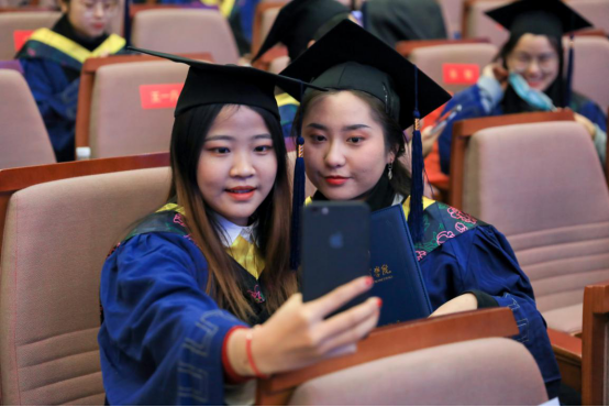老师为学生整理学位服,同学互相拍照定格青春瞬间,是这场典礼最温情的画面。依依不舍话离别,肩负使命奔向前。悠扬的校歌声中,2020届毕业生的硕士学习生涯画上了一个完美的句号。从今天开始,他们也将奔赴一个崭新的人生起点。