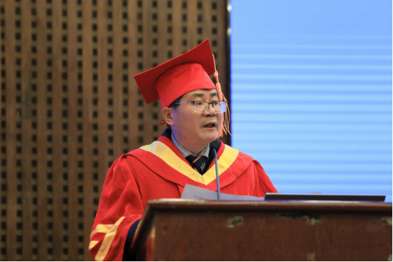 “每一位湖工毕业生都很优秀,你们在两年半的时光里书写了美丽动人的湖工故事,镌刻了青春无悔的湖工记忆。”易兵发表了充满温情的毕业致辞,肯定了毕业生们在各个领域所取得的骄人成绩和杰出表现。在同学们即将背上行装,离开校园,走向大千世界之时,易兵代表学校送上了诚挚的期望。一是矢志奋斗,行而不辍。他希望同学们到时代进步的潮流中去放手拼搏,只争朝夕,不负韶华,让青春在磨砺中出彩、在奋斗中升华,真正成长为青春脊梁、强国一代。二是追求卓越,开拓创新。他希望同学们用创新思维去发现新世界,用坦然勇气去打开新世界,用恒久坚持去拥抱新世界,勇于批判,大胆探索,自主创新,努力实现“从0到1”的首创之举。三是行稳致远,笃学实干。他希望同学们在未来人生道路上,继续发扬“锲而不舍,敢为人先”的校训精神,做到胸有全局、视野广阔、终身学习,用过硬的本领服务人民,以真才实学成就精彩人生。
