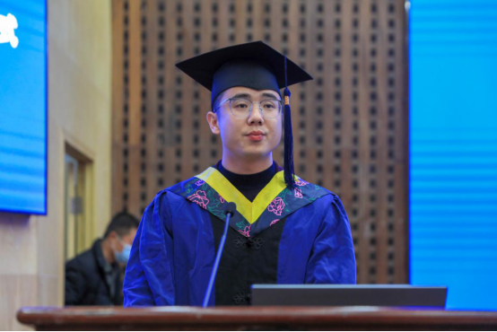 毕业生代表肖岳平回忆了校园学习生活的点点滴滴,总结了研究生生涯的收获与成长,表达了对母校的感谢与不舍之情。在校研究生代表高熙桐向学长学姐们送上了美好祝福和真诚感谢,表示将以学长学姐为榜样,在导师的带领下不忘初心,勤于科研,不断在学业上拼搏奋进。