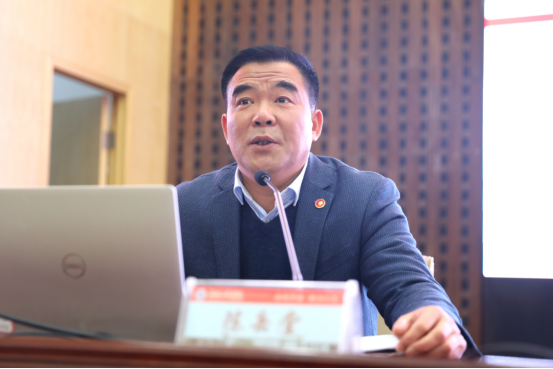 2月28日上午,学校在一报告厅举行主题为“加强党的政治建设,强化政治纪律和政治规矩”的辅导报告,这也是此次干部培训专题报告会的最后一场。报告会由党委书记陈岳堂担任主讲,校长易兵主持。