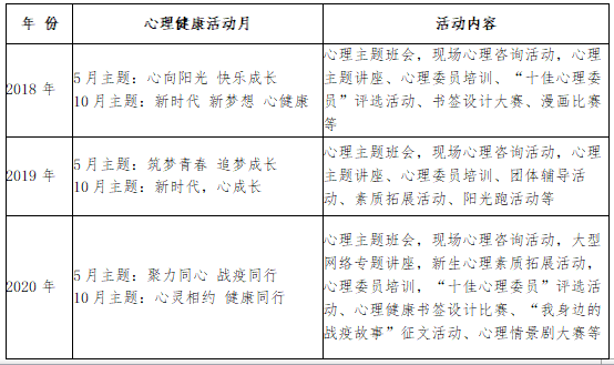 2018-2020年心理健康教育活动统计表