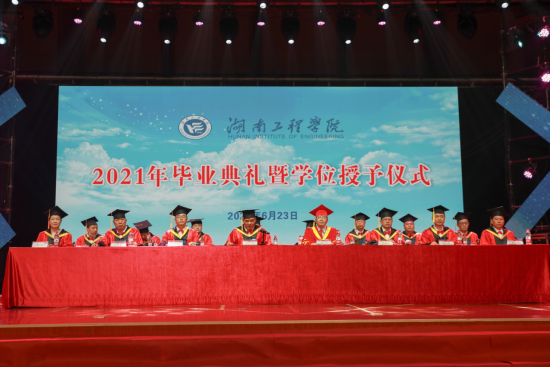 仲夏6月,桃李正甜,又是一年毕业季。6月23日上午,当清晨的阳光洒满绿荫场,2021届毕业生们身穿学士服,前往体育馆,共赴这场与湖工的盛大“约会”。今年共有4145名毕业生圆梦湖工之旅,与师长、与同学、与亲人,共同见证人生值得庆贺的时刻。校党委书记陈岳堂,党委副书记、校长易兵,党委副书记彭立威,党委委员、副校长罗毅平,党委委员、纪委书记齐路良,党委委员、副校长张小刚、向前、魏克湘,学校各职能部门、学院负责人、部分教师代表、校友代表、学生家长代表出席。陈岳堂主持典礼。