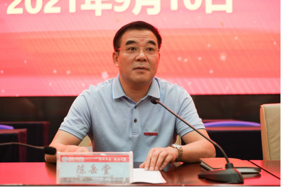 陈岳堂围绕“赓续百年初心,担当育人使命”教师节主题谈四点想法,与广大教职工共勉。一是坚定理想信念,做政治过硬的“导师”;二是锤炼高尚师德,做燃灯引路的“良师”;三是涵养扎实学识,做业务精湛的“名师”;四是常怀仁爱之心,做学生爱戴的“恩师”。他号召全体教师携手并肩、砥砺前行,以“四有好老师”为标准,做好“四个引路人”,以初心立德,以匠心育人,更加自觉地把教育教学同学校发展和国家社会需求紧密结合起来,在奉献党的教育事业中书写忠诚与担当,以立德树人的新业绩,奋力开创学校事业发展新局面。