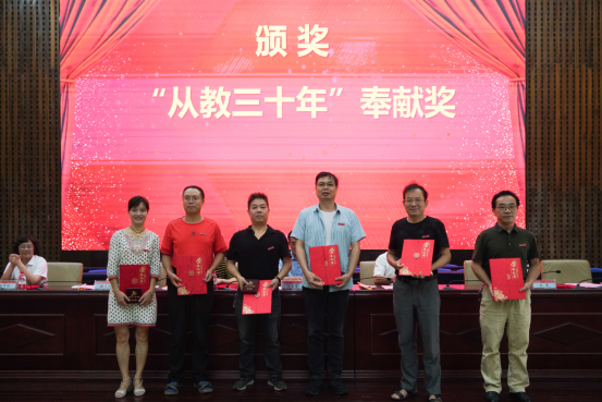 会上,陈岳堂向全校广大教职员工及离退休老教师致以节日的问候,向获得“从教三十年”奉献奖的教师致以崇高的敬意,向受表彰的优秀教师、优秀教育工作者致以热烈的祝贺。陈岳堂传达学习了习近平总书记9月8日给全国高校黄大年式教师团队代表的回信精神,希望广大教职工以身边的黄大年式教师为榜样,真正把为学、为事、为人统一起来,不负时代重托,认真履职尽责。