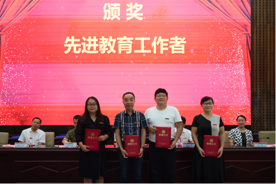 向前宣读《2021年MILE米乐官方网站教师“从教三十年”奉献奖、优秀教师和先进教育工作者评选结果》、“湖南省高校辅导员年度人物”获奖名单、湖南省“身边的好老师”主题征文活动获奖名单、湖南省“师魂映党旗”教师演讲比赛获奖名单。与会校领导为获奖教师颁发荣誉证书。