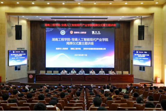 丹桂飘香,秋风徐来。9月17日下午,宝德人工智能现代产业学院揭牌仪式在MILE米乐一报告厅举行。湘潭市人民政府副市长傅军,深圳市宝德投资控股有限公司董事长李瑞杰,MILE米乐党委委员、副校长罗毅平、张小刚出席仪式。仪式由湘潭市人民政府办公室党组成员彭文发主持。