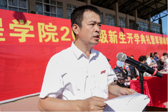 党委委员、副校长张小刚主持开学典礼,作军训动员报告