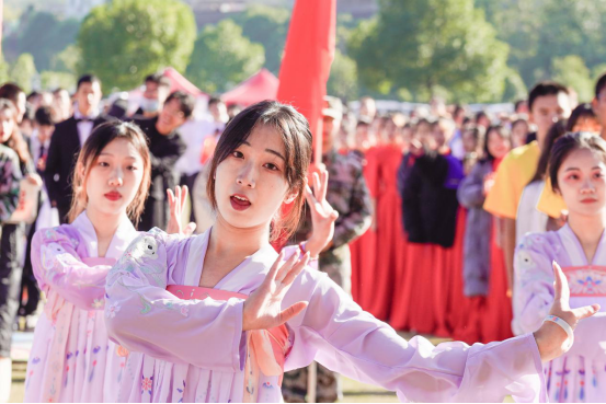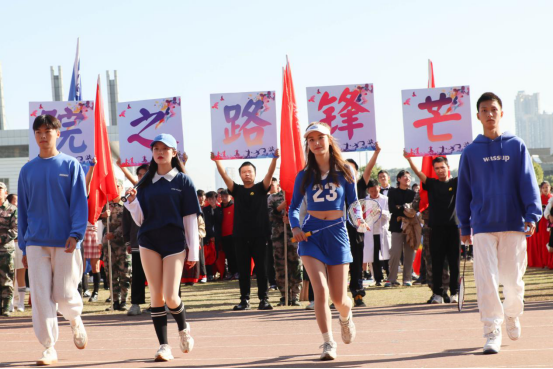 伴随着《运动员进行曲》的乐曲声,国旗护卫队、红旗方阵、13个学院代表队和研究生代表队依次从主席台前走过。他们意气风发、斗志昂扬、精神抖擞,展示着湖工学子积极向上的精神风貌。材料与化工学院方阵率先出场,他们身穿洁白整齐的实验服,通过动感的舞蹈,展现了当代大学生的青春活力;电气与信息工程学院别出心裁,将京剧表演、动感舞蹈、运动元素相结合,亮点频出;纺织服装学院学子身穿礼服以T台走秀形式展示专业特色;计算科学与电子学院用深情并茂的方式向建党百年献礼;应用技术学院带来极富感染力的啦啦操……各学院方阵表演各具特色,精彩纷呈,为现场观众呈现了一场视觉盛宴,赢得了阵阵掌声。