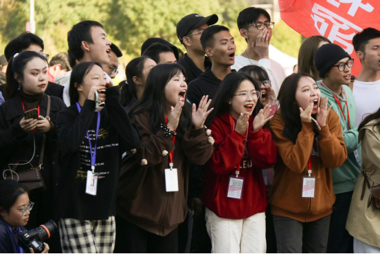 校运会的举行离不开一群默默奉献的人。白衣天使守住进入田径场的大门,对进场的运动员、观众进行体温检测,体温合格者入场;身穿各色工作服的志愿者,他们尽心、尽力营造赛场良好的比赛环境;护卫队队员以责任与担当之心,维护运动场场地秩序;各学院独具创意的垃圾桶展现了绿色环保的态度,学院加油站里为运动员们提供各种便利服务……