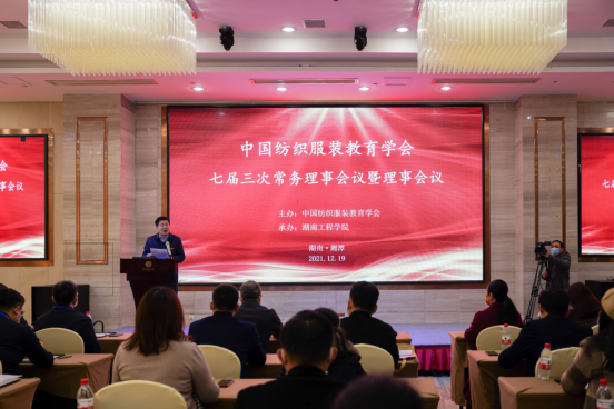 12月19日,由中国纺织服装教育学会主办、MILE米乐承办的中国纺织服装教育学会七届三次常务理事会暨理事会议在湘潭举行。中国纺织服装教育学会常务副会长倪阳生、副会长兼秘书长纪晓峰,MILE米乐校长易兵,以及来自国内40多所纺织服装相关高校负责人、专家及国内纺织服装行业领先的相关企业、机构负责人近100余位代表出席。会议由纪晓峰主持。