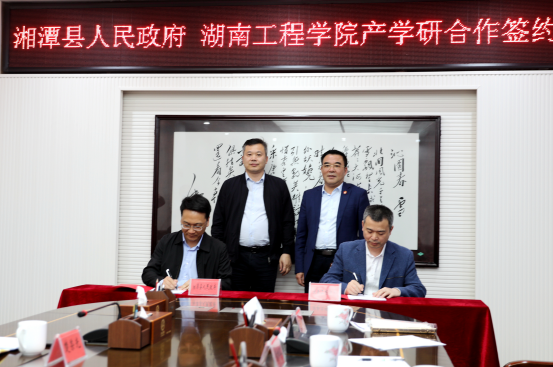 为进一步加强校地融合,与地方政府、企业共商合作、共创平台、共享成果,拓宽校地、校企与高校交流合作渠道,同时深入贯彻落实教育部全国高校书记校长访企拓岗促就业专项行动要求,4月14日下午,党委书记陈岳堂,党委委员、副校长张小刚一行到湘潭县交流,与湘潭县政府签订合作协议,走访相关企业。